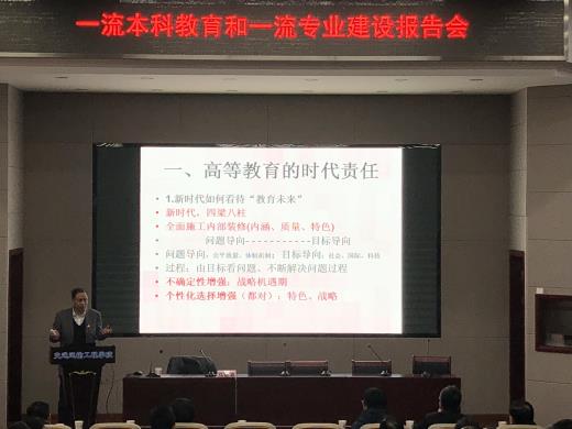 教育部发展研究中心主任马陆亭作了题为一流本科教育和一流专业建设的报告。马陆亭教授从高等教育的时代责任、育人内涵的加强、学科与专业建设、扎根中国大地办大学四个方面详细阐述了高等教育、高校育人、学科与专业的建设发展。学校发展规划处处长卢毅作了题为国家一流学科建设高校建设方案对标分析报告。报告围绕一流学科建设背景、世界一流大学和一流学科建设的主要策略、学校一流学科建设情况等方面展开。