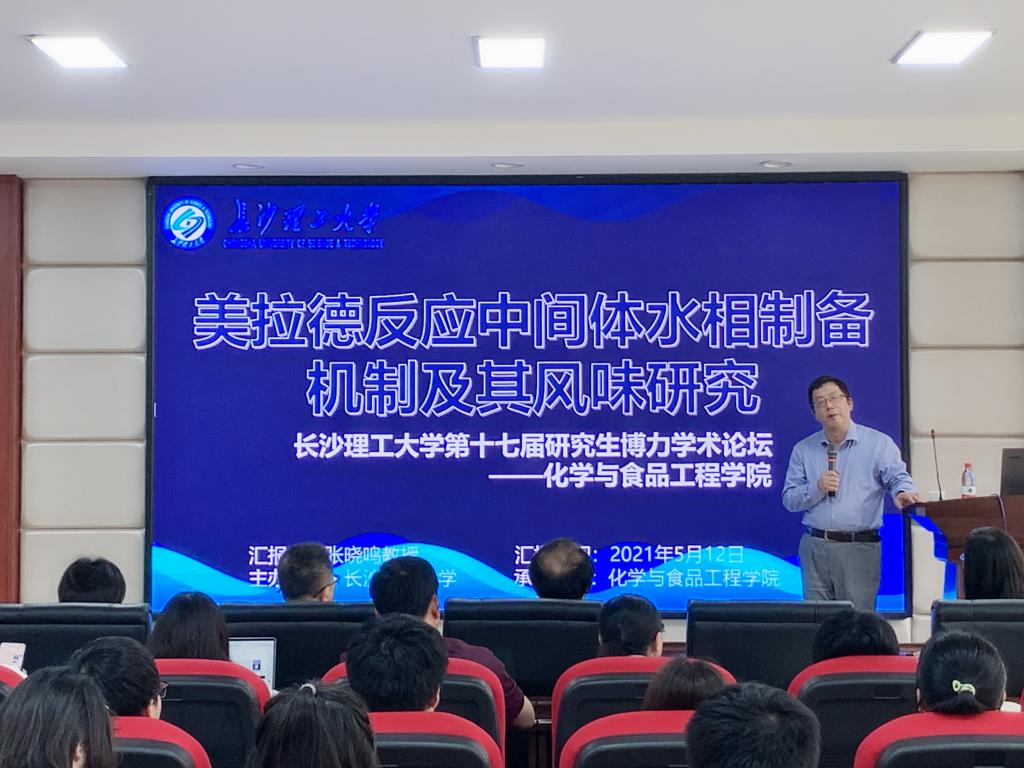 今年是建党一百年,也是中国共产党带领全国人民迈入健康生活的新百年,人们对美好生活和健康的向往越来越强烈。为了满足人们对“味蕾”和“健康”的双重需求,食品专业的研究生需要在此领域进行更深层次的探索。5月12日上午,化学与食品工程学院在工三A320举办第四期研究生博力学术分论坛。由江南大学食品学院食品科学与技术国家重点实验室张晓鸣教授主讲,主题为“美拉德反应中间体(MRIs)水相制备机制及其风味研究”。学院党委书记程云辉主持,食品专业的相关老师和研究生参加。