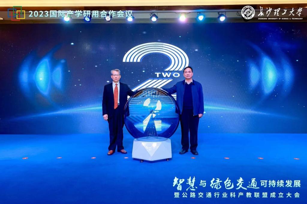 致辞过后,周芳友与黄创霞共同主持了“公路交通行业科产教联盟”成立仪式,并为公路交通行业科产教联盟第一届理事单位授牌。