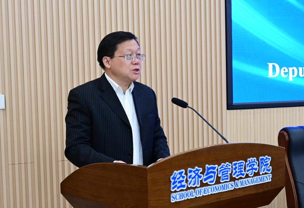 院长彭新宇教授代表学院向与会学者们表示热烈的欢迎。他表示,经济与管理学院非常荣幸能够承办此次国际研讨会,感谢亚太应用经济学会的信任与支持,感谢各位专家、学者的积极参与和支持,希望与会青年学者与博士研究生能够充分利用此次会议的机会,加强交流与合作,共同推动数字技术与可持续发展相关领域的研究和发展。彭新宇教授强调,数字技术与可持续发展是当前全球关注的热点问题,也是经济与管理学院的重要研究方向之一。他希望与会者能够围绕数字转型与可持续发展的主题,深入探讨相关领域的最新研究成果和前沿问题,为未来的研究和发展提供新的思路和方向。