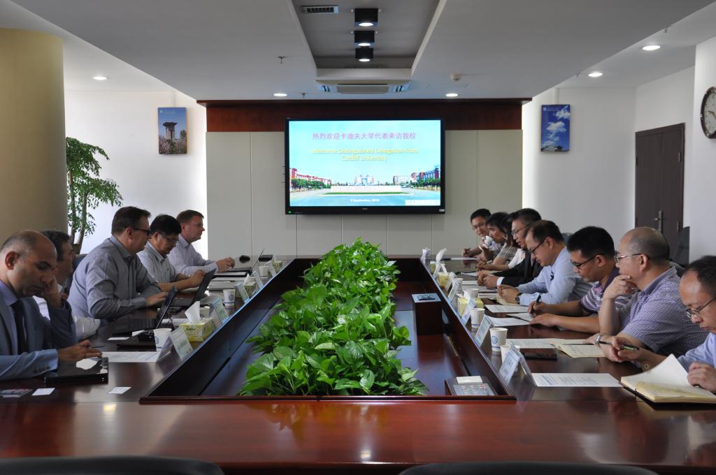 On the morning of September 9, Johannes Benedikt , vice-president of the Faculty of Engineering (International Department) of Cardiff University, UK, and his delegation visited the University. Vice-president Jiang Changbo met with the guests at Yuntang Campus. Relevant officials from the International Exchange Office and the School of Transportation Engineering accompanied the meeting. The two sides held talks on cooperative education in transportation , civil engineering, hydraulic engineering and automobile&mechanical engineering.