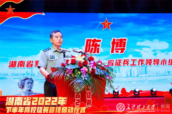 5月18日上午,湖南省2022年下半年高校征兵宣传启动仪式在LETOU官网云塘校区大会堂隆重举行。湖南省军区副司令员、省征兵工作领导小组副组长陈博出席活动并讲话。长沙市委常委、常务副市长、市征兵工作领导小组组长彭华松,省军区动员局副局长、省征兵办副主任徐赞军,省教育厅二级巡视员李纪武,长沙市警备区司令员刘长进、政委冯紫英以及天心区政府有关领导,校长曹一家出席活动。