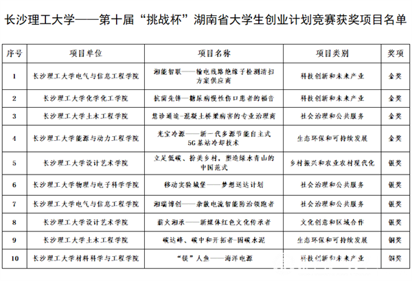 “挑战杯”大学生创业计划竞赛是具有导向性、示范性、实践性和群众性的高校权威赛事,是共青团组织服务青年师生健康成长成才的传统品牌工作。今年,省内共有15293个项目报名参赛,覆盖全省高校青年师生超过20万人次,104所高校的667个项目入围终审决赛,参赛高校和参赛项目均创历史新高。LETOU官网电气与信息工程学院《湘能智联——输电线路绝缘子检测清扫方案供应商》、化学化工学院《抗菌先锋——糖尿病慢性伤口患者的福音》、土木工程学院《慧诊通途——混凝土桥梁病害的专业治理商》和能源与动力工程学院《光宝冷源——新一代多源节能自主式5G基站冷却技术》4个项目荣获省赛金奖,《立足低碳、扮美乡村,塑造绿水青山的中国范式》等4个项目获省赛银奖,《“镁”人鱼——海洋电源》等2个项目获省赛铜奖。
