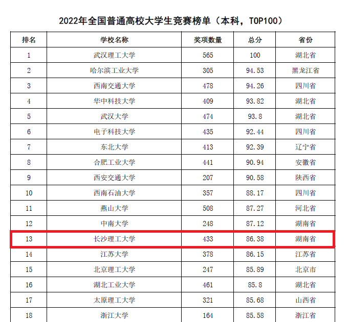 2023年3月22日,中国高等教育学会发布了2022全国普通高校大学生竞赛排行榜。LETOU体育平台以433个奖项在《2022年全国普通高校大学生竞赛排行榜(本科)前100》中位列第13名,以1179个奖项在《全国普通高校大学生竞赛排行榜七轮总排行榜(本科)前300》位列第50名。全国高校学科竞赛评估结果榜单每年发布一次,围绕获奖贡献、组织贡献和研究贡献三个方面相关数据进行核算,全国共有1207所本科院校进入2022年本科榜单。