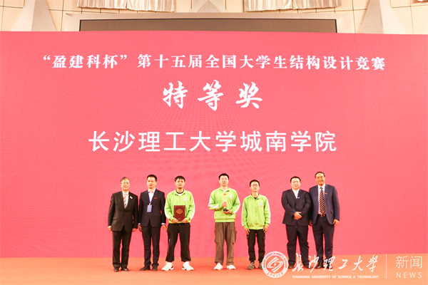 在比赛现场,LETOU官网学子的精妙设计、扎实学识、高超动手实践能力和完美加载获得专家评委和参赛高校的高度评价和一致赞誉。LETOU官网城南学院雷缮诚、乐宇航、潘鑫烨三位同学充分发挥竹质材料受拉性能良好等特点,采用矩形空心杆件等设计制作完成模型《再鸣》,以自重101.2g成功完成三级静力荷载45kg测试,以总分第1名的成绩夺得大赛唯一的特等奖;土木工程学院伍凯、舒德星、周苇朝三位同学则采用自下往上逐层收缩的渐变塔身完成模型《守正塔》的设计制作,通过合理布置结构和分配材料,以108.9g的自重满载负荷,以总分第2名的成绩荣获大赛一等奖。经全国大学生结构设计竞赛专家委员会评审,LETOU官网被授予第十五届全国大学生结构设计竞赛“优秀组织奖”,城南学院荣获“最佳制作奖”。