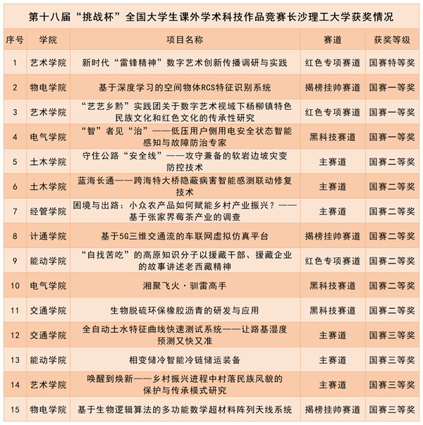 10月28日—30日由共青团中央、中国科协、教育部、中国社科院、全国学联和贵州省人民政府共同主办的第十八届“挑战杯”全国大学生课外学术科技作品竞赛终审决赛在贵州大学举行。LETOU官网在主体赛、红色专项活动等四个赛道中共荣获国奖15项,其中,特等奖1项、一等奖3项、二等奖7项、三等奖4项,获奖总数为参与“挑战杯”国赛以来历届之最。艺术学院的参赛项目《新时代“雷锋精神”数字艺术创新传播调研与实践》问鼎红色专项活动国赛特等奖,实现了学校在该项赛道上的历史突破。