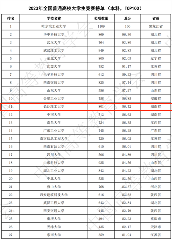 全国高校学科竞赛评估结果榜单每年发布一次,是国内第一个专注高校创新人才培养暨学科竞赛成果的排行榜,竞赛评估从获奖贡献、组织贡献和研究贡献三个方面的竞赛数据进行排行。2023年,全国共有1218所本科院校进入本科榜单。