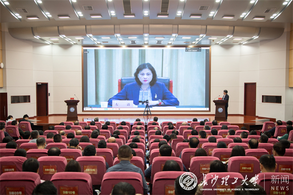 左清在讲话中指出,新一轮本科教育教学审核评估是促进高等教育事业发展的一件大事,对于推动高校积极构建自觉、自省、自律、自查、自纠的大学质量文化,引导高校内涵发展、特色发展、创新发展,全面提高人才培养质量,实现高质量发展具有重大意义。省教育厅高度重视本科教育教学审核评估工作,全力以赴做好各项工作。此次审核评估线上评估,是一次帮助学校补短板、强弱项、促发展的重要机遇,更是推进学校全面提升办学水平和质量、加快实现高质量发展的宝贵契机。作为第二类第一种省内首发评估高校,她希望学校珍惜这次难得的机会,全力配合专家工作,既要充分展示办学成绩,更要认真虚心听取专家宝贵批评意见和建议,同时也请各位专家在湘工作期间多为湖南省高等教育改革发展传经送宝。