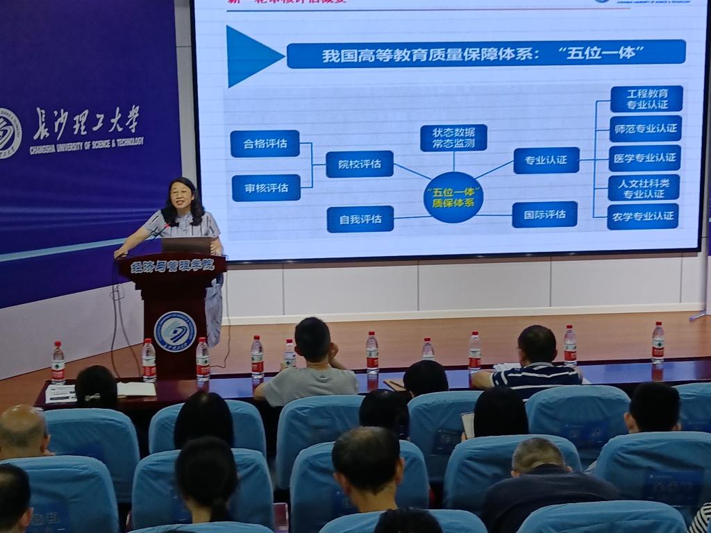 大会伊始,校评估中心副主任贺晖作为特邀嘉宾为全院教职工作题为《新一轮本科教育教学审核评估学院层面迎评工作要点》的专题报告。贺晖从“新一轮审核评估概要”和“学院迎评工作要点”两部分着手,介绍了此次审核评估的背景、流程、意义,从教学大纲准备、听课看课准备、校内外考察走访准备、师生问卷调查等方面,梳理总结了学院层面新一轮审核评估的评建改要点,她希望学院以本次审核评估工作为契机,切实提升学院本科教育教学工作发展质量。