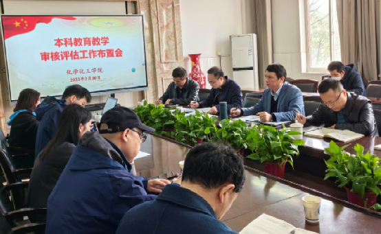 为深入贯彻落实学校关于本科教育教学审核评估的文件精神和工作要求,系统推进学院本科教育教学审核评估工作,进一步准确把握审核评估方案,做好迎评各项准备工作,2023年3月30日上午,化学化工学院在工三B318召开了本科教育教学审核评估工作布置会。化学化工学院党委书记宋刘斌,副院长(主持工作)张跃飞,学院党委副书记兼副院长任艮丰、副院长喻林萍、学院分析测试中心副主任黄永华、学院本科教育教学审核评估工作组全体成员,教务办全体工作人员参与会议。会议由副院长陈启杰主持。