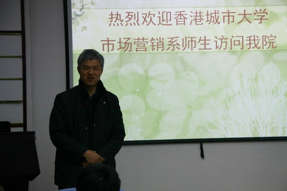 2012年1月5日下午,香港城市大学陈立文教授和徐申博士率该校市场营销系26位师生对我院进行友好访问交流。经济与管理学院院长杨海余教授、营销系主任黎建新教授以及市场营销专业部分师生在云塘校区出席接待。