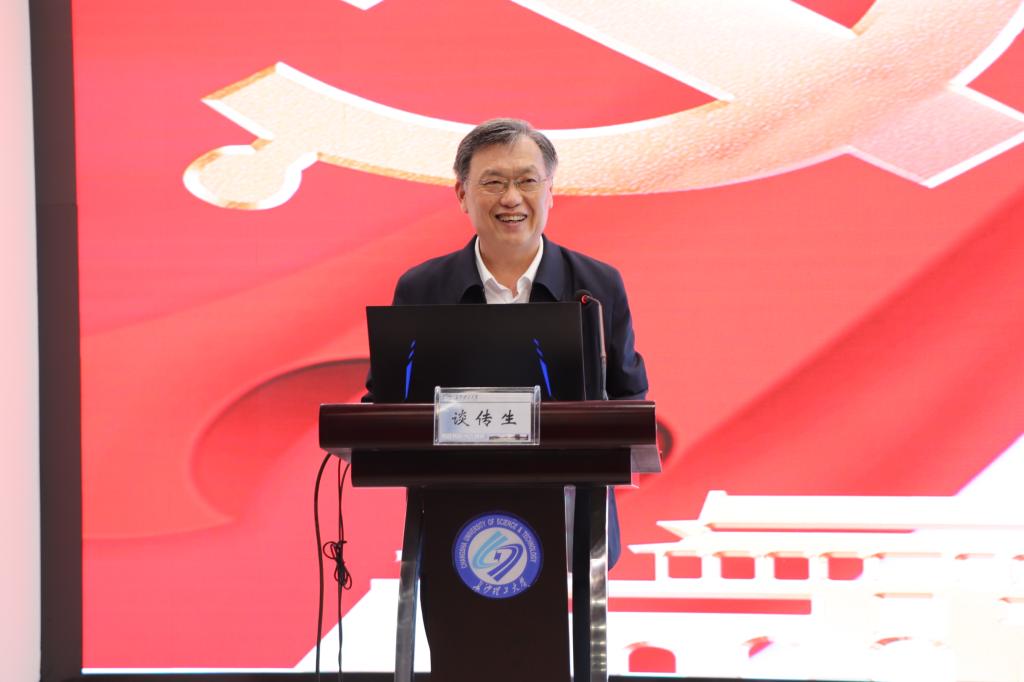本次党课以《端正入党动机,加强党性修养》为题。正值中国共产主义青年团成立一百周年,谈传生提出,党员发展对象首先要履行共青团员的责任与义务,中国共青团是党的后备军,初心和使命是坚定不移跟党走,为党和人民而奋斗。他指出端正入党动机重要的是牢记党的教育,立志民族复兴,努力做好“三个不负”,要做社会主义核心价值观的坚定信仰者、积极传播者、模范践行者。随后,他详细讲述了中共一大13位代表的故事,来阐释坚定理想信念的重要性、端正入党动机的含义极其重要意义。针对当代大学生不良入党动机及其纠正,谈传生从理论学习补钙、实践锻炼“强筋”、传统文化“提气”三个方面展开讲述如何加强党性修养。