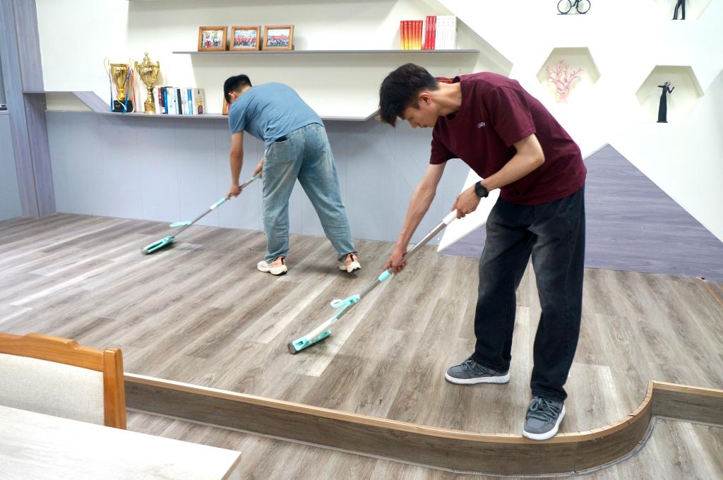 实践课伊始,学员们按照分组提前准备了必要的劳动工具,并准时到达了各自负责的清扫区域。他们分工明确、各司其职,认真扫地拖地、精心擦拭书桌、细致整理书架,纷纷发挥着团结协作、吃苦耐劳的精神,展示着斗志昂扬、积极向上的风貌,高效率完成了此次清扫活动,为同学们营造了更加舒适的住宿环境,也践行了服务同学、服务集体的承诺。每一个角落,都留下了学员们辛勤劳动的身影。焕然一新的地板桌面、一尘不染的窗户书架,都是学员们对“劳动最光荣”这句话最真实的诠释。
