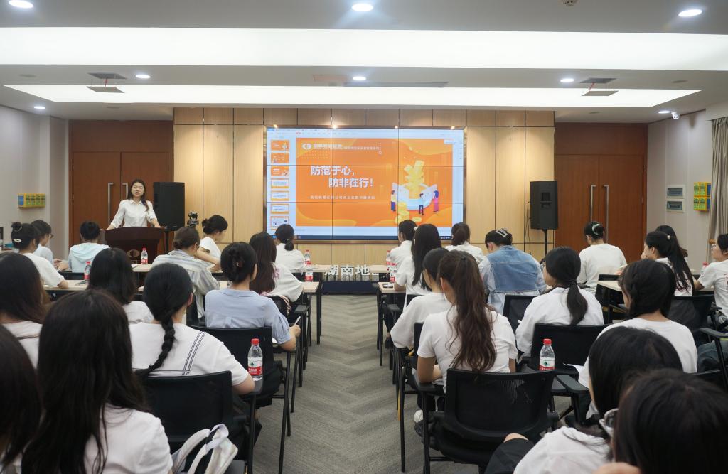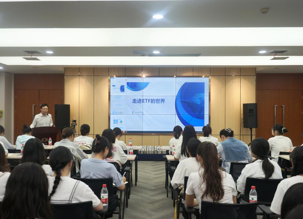 学员们到访后,投教基地讲解员首先介绍了公司的基本情况和业务范围,之后引导学员们依次参观了基地投资知识区、风险警示区、模拟交易区等展区。学员们在各个展板、互动设备和体感游戏屏前纷纷驻足,在听取讲解的同时对关心的问题踊跃提问、交流。随后,国泰君安证券湖南分公司金牌投资顾问阳煦、向楠分别就“走近ETF的世界”、“防范非法证券活动”两个主题为学员们进行授课,不仅讲解了基金、指数化投资及ETF基本概念,同时就如何防范金融诈骗及投资理财的相关知识也进行了详细说明,并通过短视频展示了投资诈骗的常见套路和防范方法,加深了大家对于保障个人投资权益的意识。活动最后,学员们参与了《股东来了》这一投资者权益知识竞赛活动,对投资权益类知识有了更进一步的了解,学员们也将所得所获进行自由交流,并向授课老师提问,进一步加强了本次实践活动的教育效果。