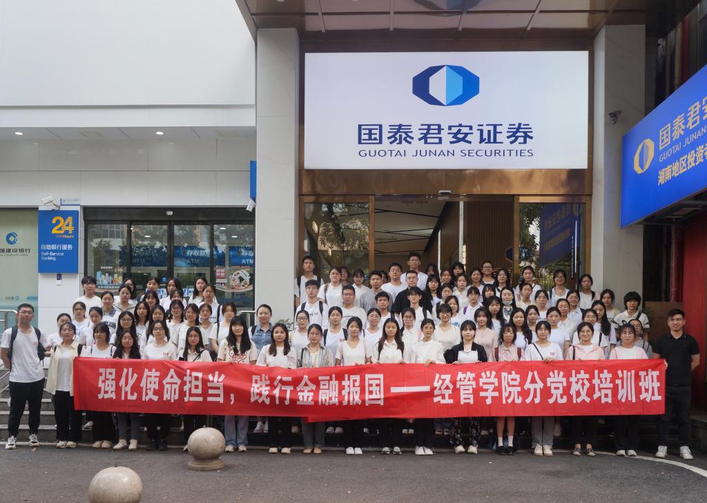 为进一步提升发展党员培训班学员的行业认知和实践能力,构建产学研深度融合新模式,经济与管理学院联合国泰君安证券湖南分公司共同举办了“产学合作,躬身实践”实践调研活动。第20期党员发展对象培训班全体学员在学院党建辅导员吴畏老师的带领下,于5月26日下午前往国泰君安证券湖南地区投资者教育基地参与此次活动。