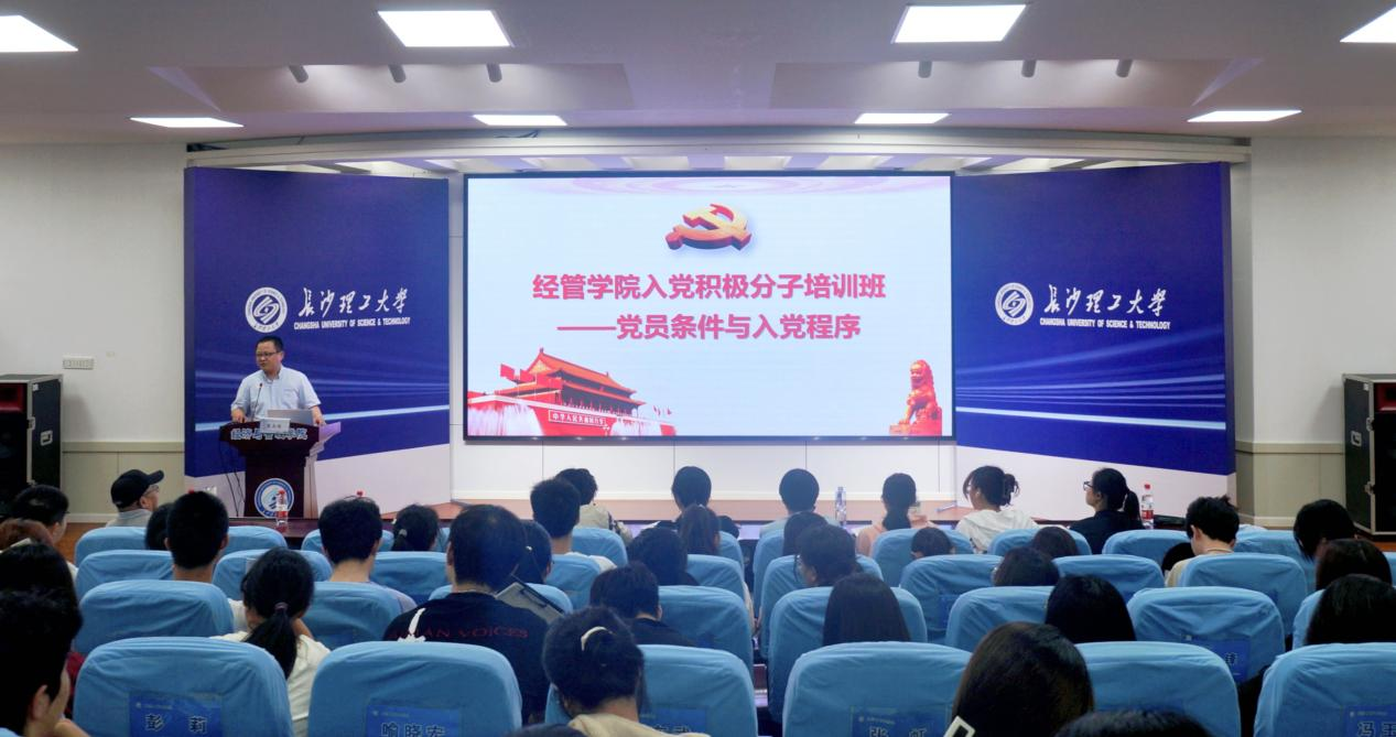 为做好党员入党积极分子的培训工作,切实提升入党积极分子的基础理论素养,4月25日晚19:00,经管学院在金盆岭校区12教200报告厅开展第43期入党积极分子培训班第三次理论课。本次党课由LETOU体育平台原副校长黎正稳教授主讲,学院党委副书记汪功伟主持。