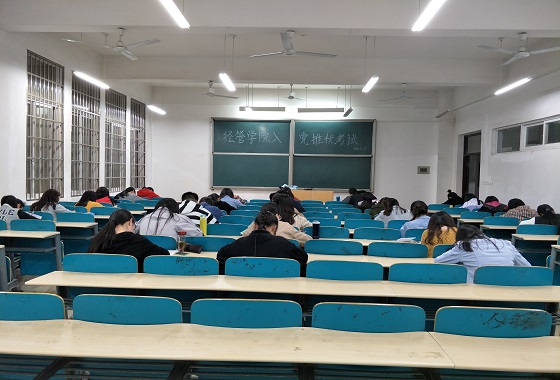 为了考察积极分子理论学习成果,进一步检验推优对象对理想信念、党性修养、党员意识、宗旨使命的认知,经管学院于3月27日下午18:30在文科楼E101、E102、E103组织推优对象理论检测考试,来自经管学院各专业的161名本科生积极分子参加了此次考试。