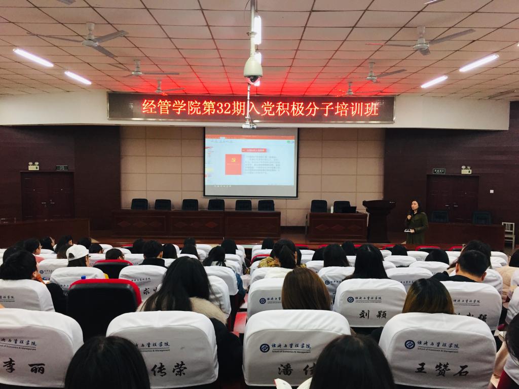 2018年11月19日晚,经管学院第32期入党积极分子培训班“党员条件与入党程序”一课在文科楼A200进行。本次课程由计通学院党委副书记陈华讲授。