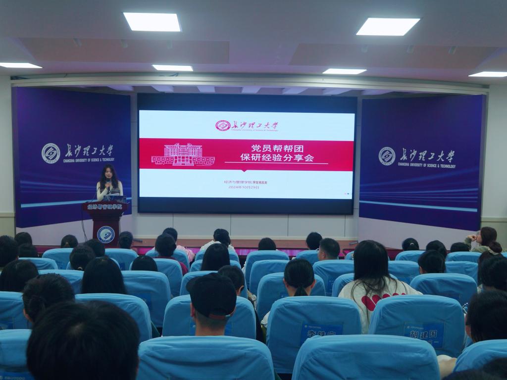 10月29日下午,经管学院在12教200报告厅举办“党员帮帮团”保研经验分享会。本次分享会由2021级7名保研学生代表林子旸、徐枫、雷真、彭诗婷、姚雁琼、孙夕媛、董湘湘进行经验分享,党建辅导员叶鑫出席会议,会议由会计2102班汪筱主持。