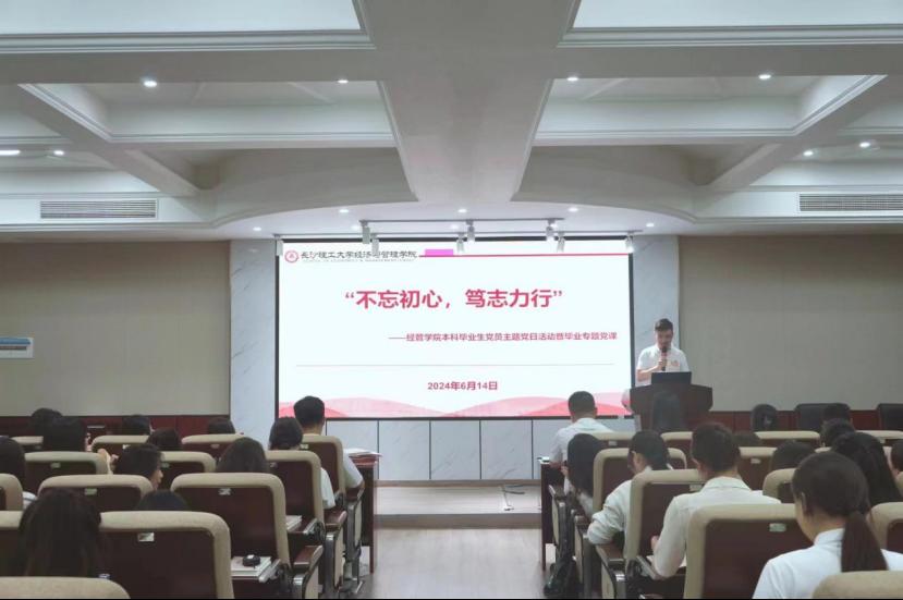 6月14日下午,经管学院2024届毕业生党员主题党日活动暨毕业专题党课在云塘校区文科楼D207顺利展开。经管学院党委副书记汪功伟、学工办主任周路路、党建辅导员叶鑫、团委书记何涛以及全体毕业生党员参与此次活动。活动由党建辅导员吴畏主持。