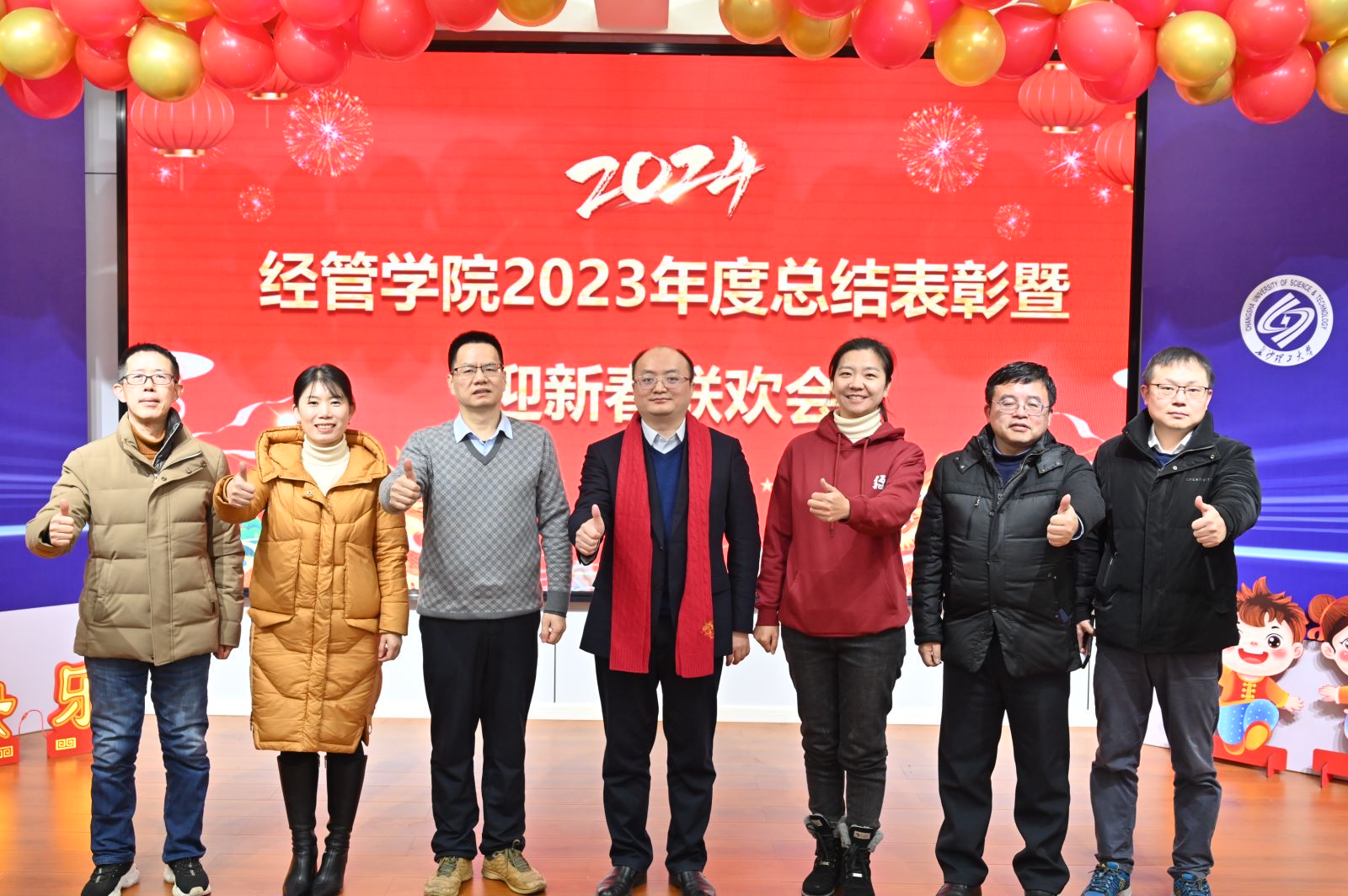 1月23日上午,经管学院在12教200室以线上线下相结合的方式举行2023年度总结表彰暨迎新春联欢会。学院全体教职工参加,会议由学工办周路路、戴逢哲主持。
