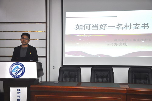 4月23日下午,经管学院第十六期职业与人生大讲坛于云塘校区文科楼E501顺利举行。此次邀请的主讲嘉宾是全国文明示范村湖南省新化县吉庆镇油溪桥村党支部书记彭育晚。院党委书记王宏、副书记涂道勇,经贸系副主任谢新梅及学生党员代表参加了此次讲座。