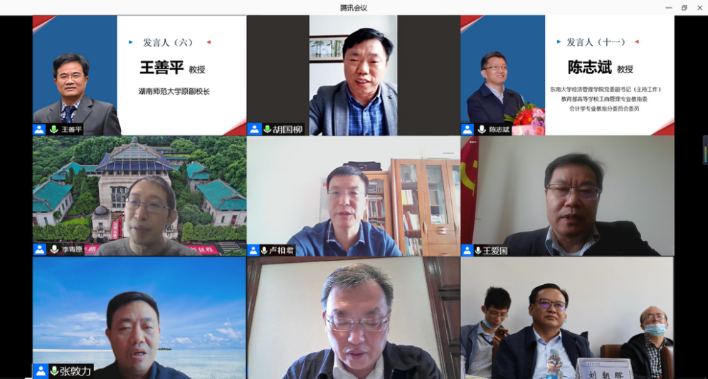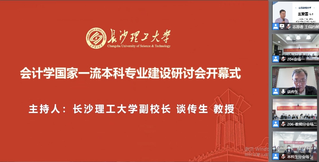 会议“云”集北京工商大学、重庆工商大学、中南财经政法大学、厦门大学等11所双一流大学的12位教指委委员、专家学者,和线下分会场来自经济与管理学院100余名师生,共同研讨会计学一流本科专业建设思路及目标、人才培养模式改革、课程体系建设和新时期财务会计研究热点。会议分为开幕式、主旨报告和云论坛三部分。开幕式由副校长谈传生教授主持。