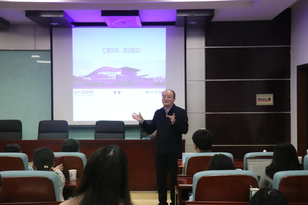 2021年10月31日下午2:30,由教学质量监测与评估中心主办,经管学院承办的第二期青年教师教学与科研能力提升沙龙在金盆岭校区7教212教室举行。本期沙龙邀请了湖南师范大学“湖湘学者”特聘教授、大国经济研究中心副主任熊瑞祥为我院师生做了题为“劳动力市场制度与企业行为”的专题讲座。随后,我院经贸系胡尊国老师也开展了题为“区域政策、生产部门变迁与南北地区发展差异”的专题分享。学院青年教师和研究生参加了讲座。此次讲座由副院长彭新宇教授主持。