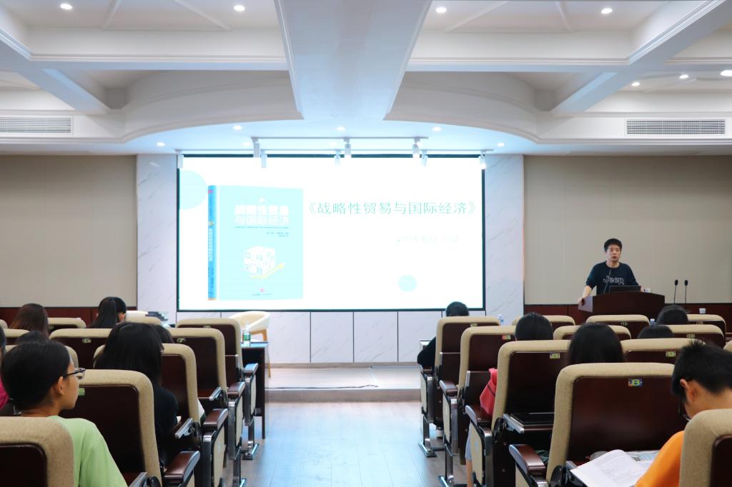 尔后,梁向东老师与大家分享了《战略性贸易与国际经济》读书心得。他从作者写作背景、主要内容等方面展开,并结合实际案例重点讲解了书籍内涉及到的理论推理,他表示在全球多边贸易体系濒临崩溃的经济背景下,当前的经济形势值得我们去研究,《战略性贸易宇国际经济》中的理论知识能够帮助同学们理解国际贸易背后的经济内涵。