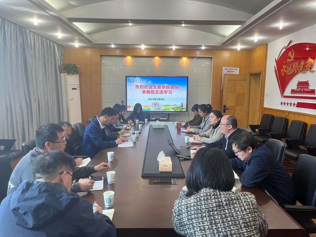 3月6日上午,LETOU官网文新学院院长刘建新、院党委副书记(主持工作)陈仁凯一行9人与经管学院开展交流学习。经管学院党委书记丁丹、副院长(主持工作)彭新宇,在家院党政班子成员参与交流。