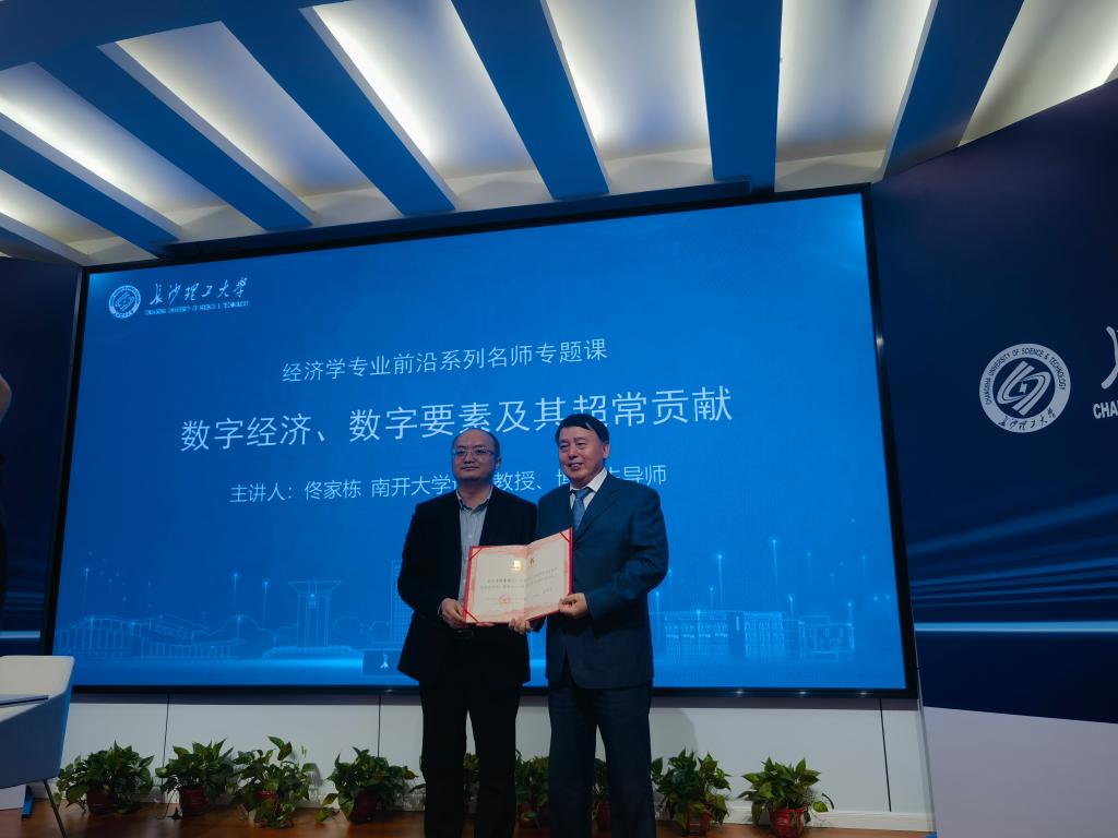 3月7日上午,南开大学讲席教授、博士生导师佟家栋受邀为经管学院经济学专业前沿系列名师专题课开讲,报告主题为“数字经济、数字要素及其超常贡献”。报告会由经管学院副院长(主持工作)彭新宇教授主持,校内师生200余人参加了此次讲座。