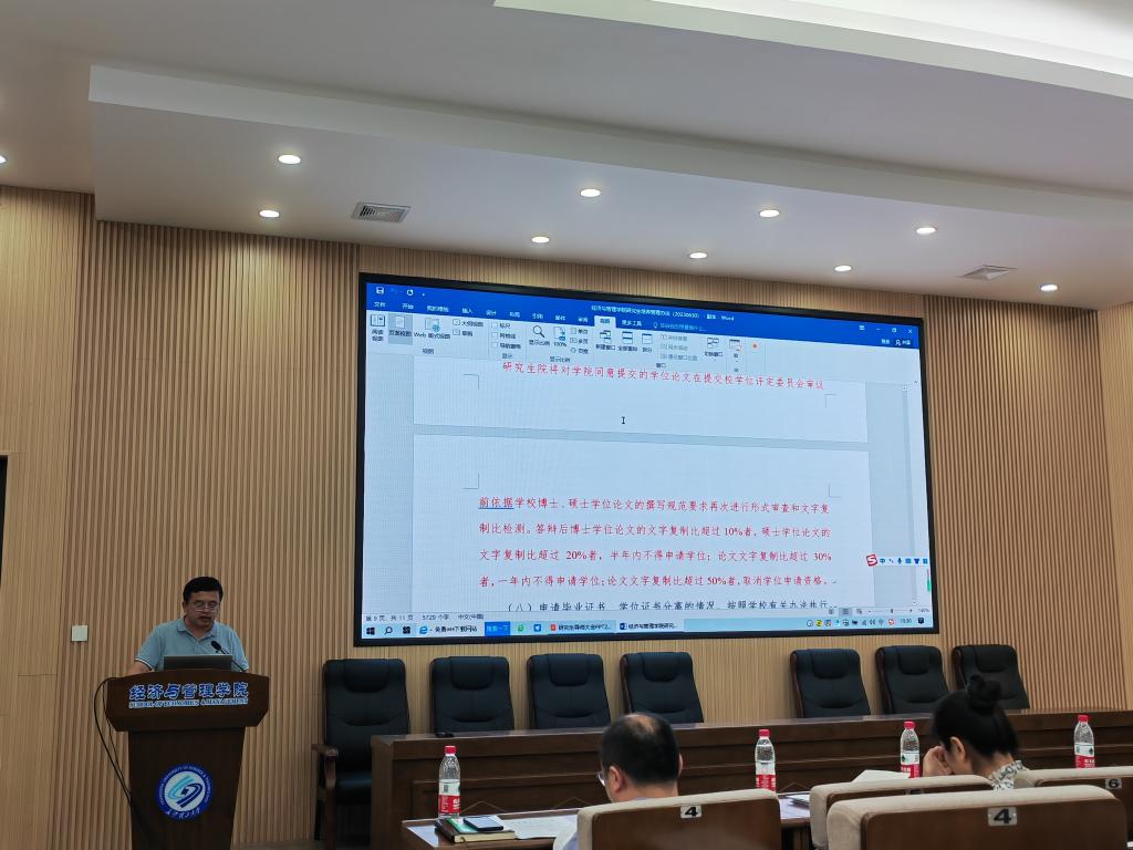 会上,主管学院学位与研究生教育工作的王治副院长向老师们解读了2022年版的《LETOU体育平台硕士、博士学位授予工作细则》,指出了学校政策与往年不同的地方,提醒导师们注意并传达到学生;对学院最新修订出台的《LETOU体育平台经济与管理学院研究生培养管理办法》进行了详细的说明和解读,并对文件中的新规定和要求进行了重点强调。彭新宇副院长(主持工作)针对这个文件涉及的新环节和新要求进行了重点解读,并对导师和研究生管理人员提出了新的工作要求。