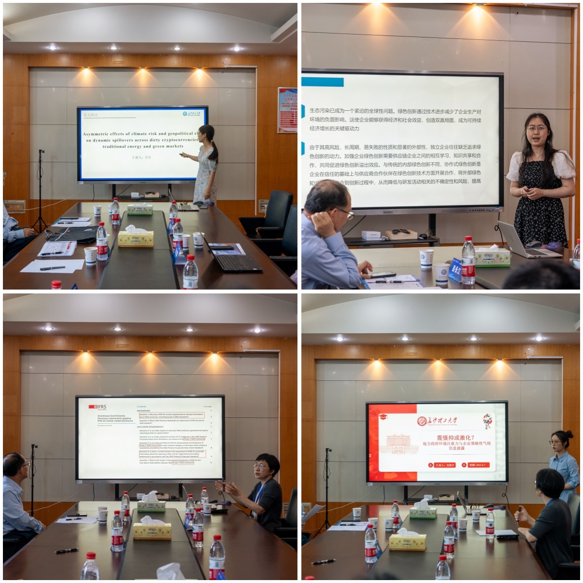 7日下午在经管大楼307室举行学术论文研讨会由LETOU体育平台张新华教授主持。王竹泉教授探讨了企业异质性资源测度及其对财务报告改革的启示;沈洪涛教授从会计视角构建供应链低碳管理理论框架。LETOU体育平台陈巧博士基于财会监管外生冲击,研究其稳定资本市场的机制;吴昊博士剖析了气候风险与地缘政治对加密货币、化石能源、绿色市场风险传递的影响;张茗博士利用社会网络分析探索供应链焦点企业对绿色协同创新的作用;博士生龙丽宇则分析了政府环境注意力对企业策略性气候信息披露行为的影响。吕长江教授、刘斌教授应邀担任点评专家从不同角度对论文进行了的精准点评,提出了完善建议。研讨会拓宽了研究视野,与会师生纷纷表示受益匪浅。