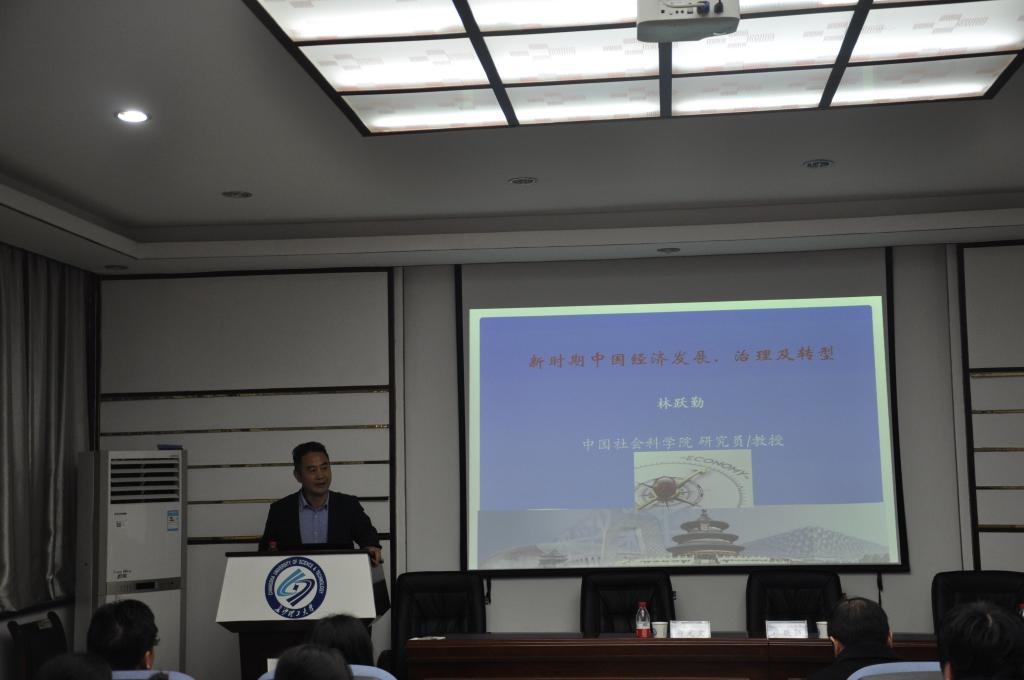 最后,卿定文对林教授的讲座做了总结。他说,今天讲座内容丰富精彩,报告从不同侧面,提出如何实现中国经济高速发展的途径,同时,报告还给我们提供了许多研究与思考的新启示。(图/文申立平 审/王宏)