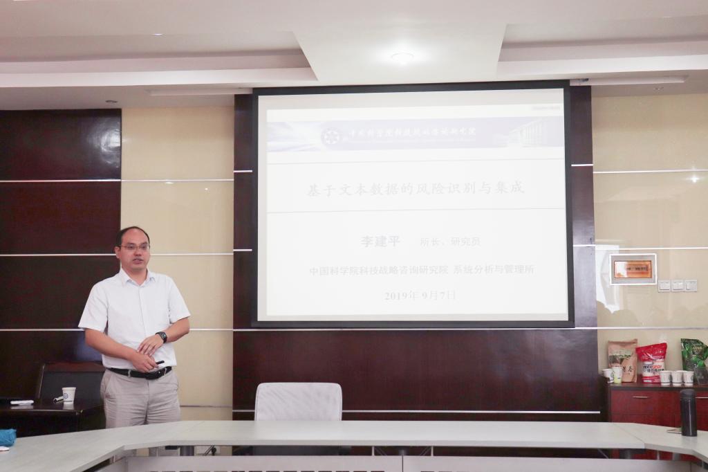 2019年9月7日上午10:30,中国科学院科技战略咨询研究院管理所所长、国家杰出青年基金获得者李建平博士应邀来我院做学术讲座,主题为“基于文本数据的风险识别与集成”,在金盆岭校区七教204开展讲座。本次讲座由张新华副院长主持,学院部分老师和研究生共40多人参加了本次讲座。