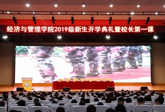 本次2019级新生开学典礼暨校长第一课,让经管学院19级新生对学校有了更深入的了解,也对自己的大学生活有了更好的规划。希望全体新生能够以梦为马,不负韶华。