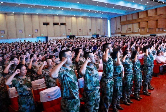 随后,在新生邓岚川的带领下,近千名新生齐声宣读入学教育宣誓誓词,对自己的将来许下郑重的承诺。