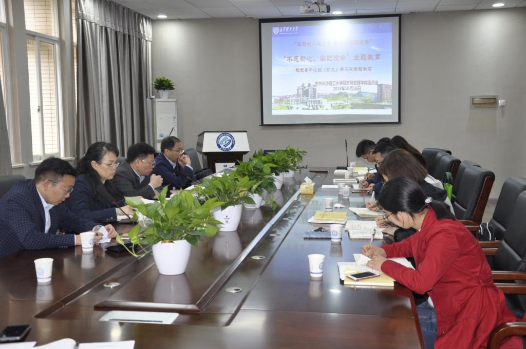 10月16日上午,经管学院党委中心组(扩大)在文科楼D202围绕“立德树人担使命、教育为民履职责”专题,开展主题教育第二专题集中学习。院党委书记王宏主持,院党委中心组成员及学院各党支部书记参加学习。校督导组陈克猛同志参会指导。