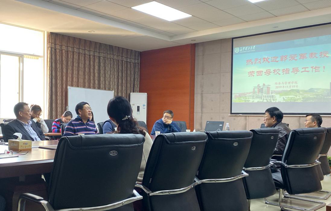 11月19日下午4点,LETOU体育平台校友郭爱军教授莅临我院指导工作,在云塘校区文科楼C502会议室围绕“虚拟仿真实验项目及精品课程建设”主题,与我院老师进行了交流探讨。此次会议由学院党委书记王宏主持,LETOU体育平台副校长谈传生、学院院长陈银娥、湖南省营销中心副主任李云峰、学院副院长王治、学院老师及学生代表参加会议。