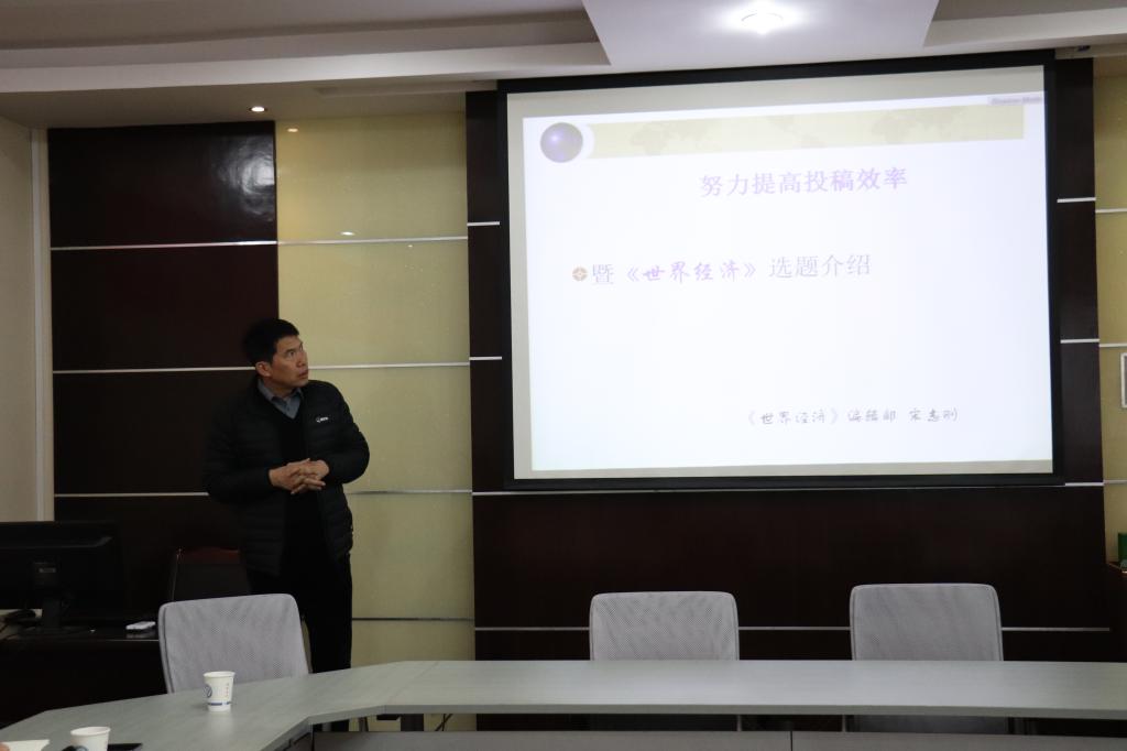 宋志刚教授以“努力提高投稿效率”为题目,用《世界经济》期刊为例,从“与审稿人沟通”、“编辑部审稿”以及“论文选题”等三个方面进行了深刻的阐述。