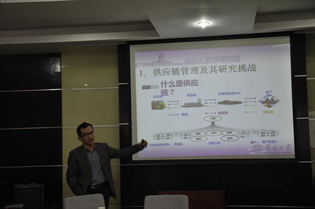 首先,李勇建教授从“供应链管理及其研究挑战、闭环供应链管理核心研究问题、闭环供应链管理国内外研究状况、研究团队在该领域的研究成果介绍和闭环供应链管理的未来研究方向”这五个方面为大家介绍了讲座的主要内容。