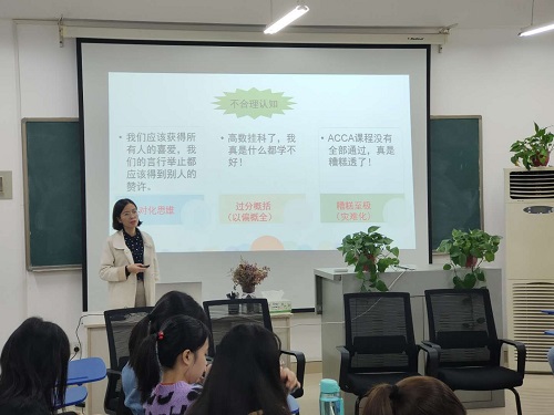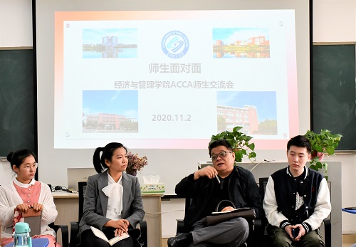 为进一步了解ACCA特色方向班的学习需求以及学习现状,加强师生间交流,11月2日下午,经管学院于文科楼D301团体成长辅导室开展“师生面对面”ACCA师生交流会。副院长谢朝华、副书记唐青、中博教育ACCA方向班教务负责老师陈文、中南林业科技大学ACCA方向班教务负责老师陈奕璇、学院心理辅导员李丽兰、ACCA方向班嘉宾与学生代表参与了交流会。