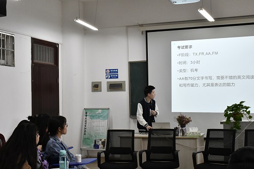 交流会由唐青主持。座谈会伊始,唐青向大家介绍了此次座谈会的目的,表达了学校和学院对ACCA项目的重视和大力支持。首先进行的是师生交环节。同学们表述了学习ACCA的感受,提出了自身在学习过程中遇到的困难与疑问。副院长谢朝华对学生的积极学习状态表示肯定,针对大家的困惑,提出了会计学专业学习、ACCA考试与学习方面的专业性指导意见。同时,他也指出了学生在ACCA学习中出现的功利倾向,建议大家在考证的同时,也要把会计学基础学扎实等。副书记唐青则建议学生考证与专业学习两手都要抓,但要注意方式方法,同时也要注重个人综合素质的提升,处理好学习与自我管理、学习与身心健康等关系。中博教育陈文老师则对学生们提出的关于课程内容与难度、网课进度问题、教学老师的指导等进行了详细答疑。紧接着是经验分享环节,由LETOU体育平台经管学院2017级ACCA方向班李昊与中南林业科技大学2017级ACCA方向班陆佳密同学主讲。两位同学均为ACCA课程全部通过的学生,结合自身学习与考证经历,传授经验与干货,并现场答疑交流。最后一个环节为心理健康教育环节,由李丽兰主讲。李老师结合特色方向班的学生的心理特点与需求,从如何正确认识压力、如何运用情绪ABC理论调整学业压力等方面进行指导。