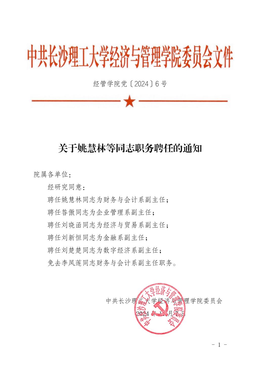 关于姚慧林等同志职务任免的通知