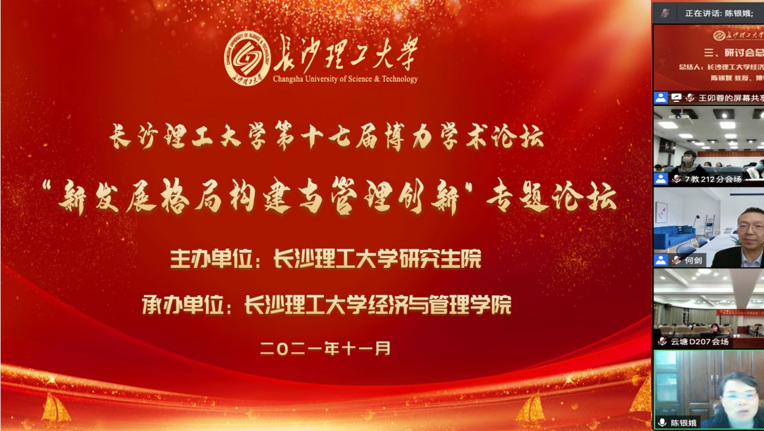 第十七届研究生博力学术论坛“新发展格局构建与管理创新”专题论坛由研究生院主办,经济与管理学院承办。博力学术论坛的创建是为增强研究生间的学术交流,促进学科交叉融合,为全面建成“百强大学”贡献科研力量。本次论坛专题以“新发展格局构建与管理创新”为主题开展,探讨如何构建新发展格局,以及基于新发展格局目标如何促进工商管理创新,这是当前经济管理界面临的时代课题,也是推动经济社会发展的根本之策。