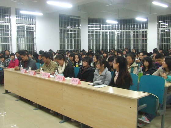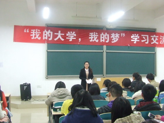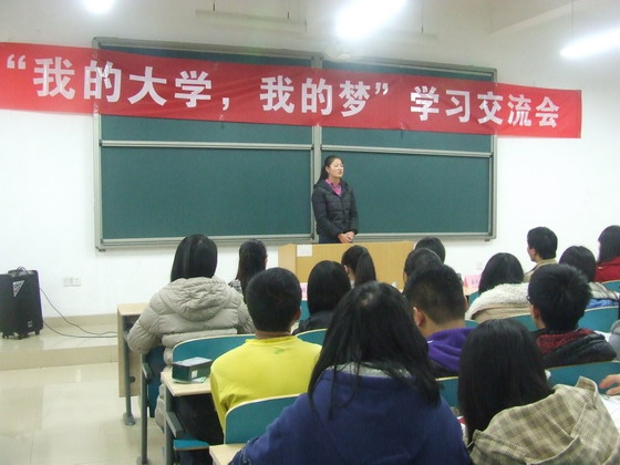 2013年12月5日晚上6:30,“我的大学,我的梦”第二次学习交流会在文科楼D105教室顺利举行。我院13级辅导员计潇老师出席了此次大会。11级分会体育部部长杨成玉、校级优秀班干伊鹏飞、院级先进个人宋卓敏以及院学生会副主席郭航分别进行发言。 首先,主持人介绍了到场嘉宾,计潇老师上台发表寄语。她说,中学的我们只是伏案学习,而大学的我们要站起来四处瞭望。她强调在大学中,大一、大二是适应生活、改变学习以及考验人际交往最关键的两年,希望所有同学都能努力成为更好地自己。 接下来杨成玉就学习的重要性以及时间的把握这两方面进行了讲话,大学生活中不能一味地追求成绩,而是要各方面全面发展,这就要求我们要提高学习效率,因为付出总是大于收获。之后,伊鹏飞对如何处理学习与工作的关系提出了自己的建议,他提出“做得越多,收获越多”的理念,并告诉同学们如何做到在不影响学习的情况下也能完成活动任务,即根据自己的习惯爱好来调整自己的作息,不能随大流,特别是要认真做作业,不能眼高手低;除此之外,他还建议同学要选择可以提高自己能力的兼职,不盲目从众。然后,宋卓敏提出了英语四级备考的意见:无论时间有多紧都要做完整的一套习题,并且要经常做练习保持手感;之后她就英语的单词、写作、听力以及阅读等方面提出了很多有用的建议。紧接着,郭航则对校外活动、校内活动以及个人的提升这三个方面介绍了许多自己的经验,告诉我们要积极参加班级、志愿者等各类有意义的活动,这样能给自己带来很多的收获;她还强调大学中要多读书,提升个人修养、注意仪表形象,准备一份漂亮并且令人印象深刻的自我介绍,有一个能互相帮助、互相提升的好伙伴。伴随着提问环节的活跃气氛,同学们的问题都有了学长学姐的详细解答,也让处于迷茫期的大一新生收获了很多课本以外的知识。 经过这次的学习交流大会,大一新生的许多问题得到了有效地解决,特别对于即将到来的英语四级考试备考,同学们获得了更多更好方法。