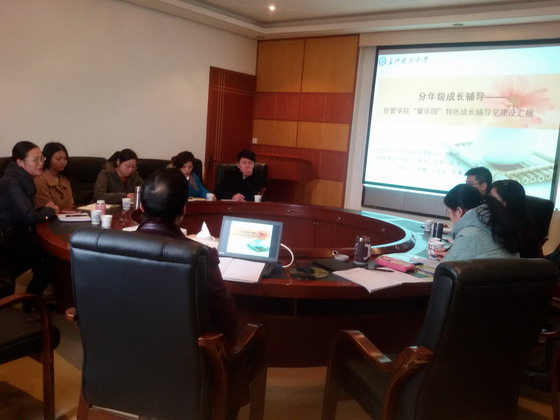 为了推进湖南省特色成长辅导室建设工作,为项目验收做准备,经管学院于2015年12月2日上午9:30召开湖南省特色成长辅导室项目督导会议。学校邀请校学工部心理健康教育中心喻玲主任来我院做督导,经管学院党委副书记彭玉楼以及全体辅导员参与了本次会议。