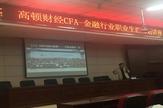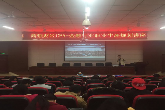 3月16日晚19:00, “高顿财经CFA——金融行业职业生涯规划”讲座在文科楼A200举行,特许金融分析师(CFA)协会会员、澳洲阿德莱德大学经济学硕士兼高顿财经高级讲师陈鹭担任主讲嘉宾,经管学院金融专业及部分相关专业学生听取了讲座。