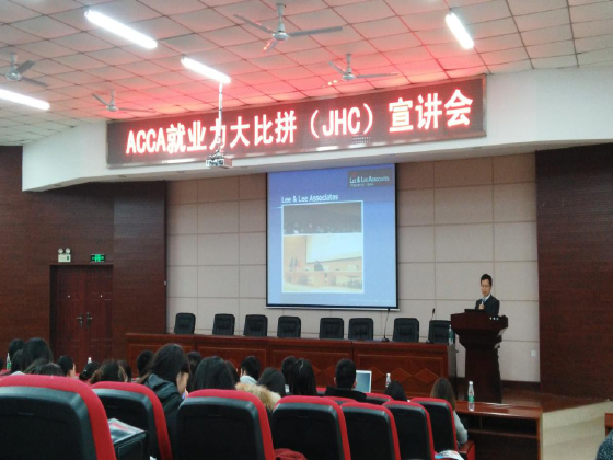 (附:JHC全国就业力大比拼是由ACCA协会举办的每年一届的校园赛事,至今已举办超过13年。立足于搭建校企沟通展示平台,帮助在校学生提高全方位就业能力。比赛在ACCA众多认可雇主的大力支持下,模拟正式工作申请流程,通过在线逻辑测试、笔试、现场面试等多元化形式营造真实商业挑战氛围,助力数万名金融、财会学子掌握求职和面试技巧,强化个人素质,为大学生提供有益的职业指导、为企业提供甄别和选拔优秀的ACCA人才的一个直接有效的平台。)