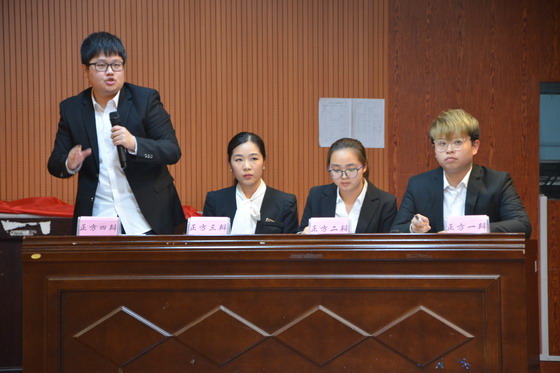 4月13日19:30,第九届“守正杯”辩论赛总决赛于文科楼模拟法庭进行。湖南省演讲与口才学会执行会长兼秘书长刘湘酃老师、纪检监察处处长胡秀英教授、党委宣传部邓崛峰副部长、马克思主义学院院长陈万球教授、文法学院成松柳教授、学生工作部唐超文副部长、研究生院喻玲娜副院长受邀担任评委。校团委书记王学成,经管学院党委副书记艾楚君,交通学院党委副书记田上,校团委副书记文丽丽,经管学院分团委书记陈钰汀,交通学院分团委书记曾凯出席比赛。